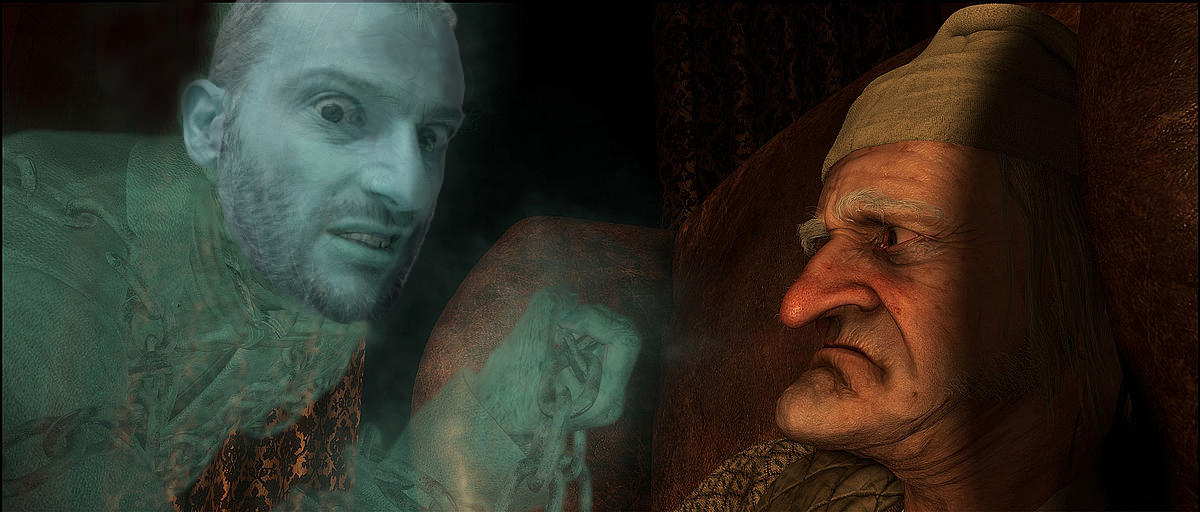 “Sono il fantasma dei Natali passati, Ebenezer! Calmati! Ora verrai con me e ti farò vedere qualcosa che ti servirà…”