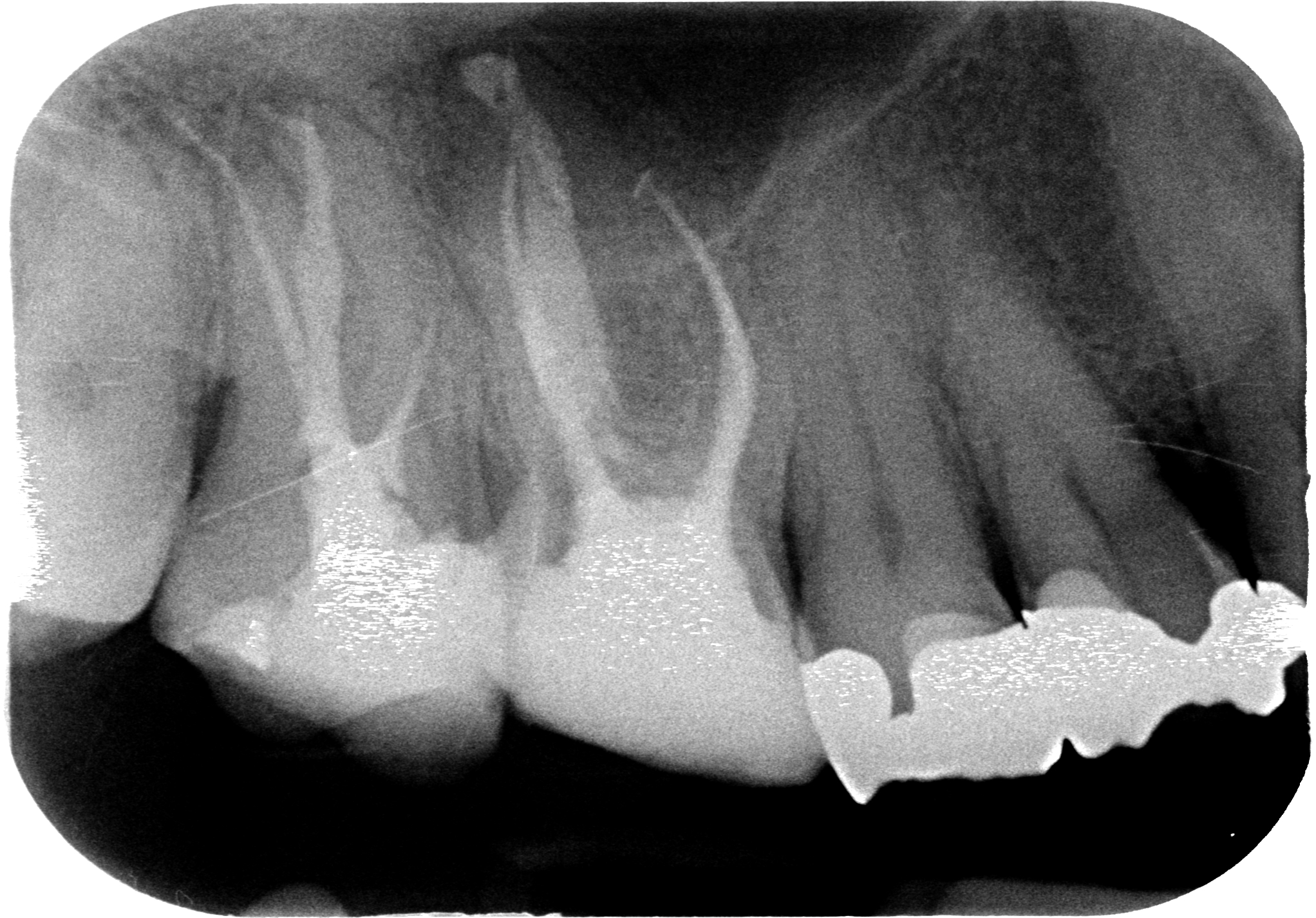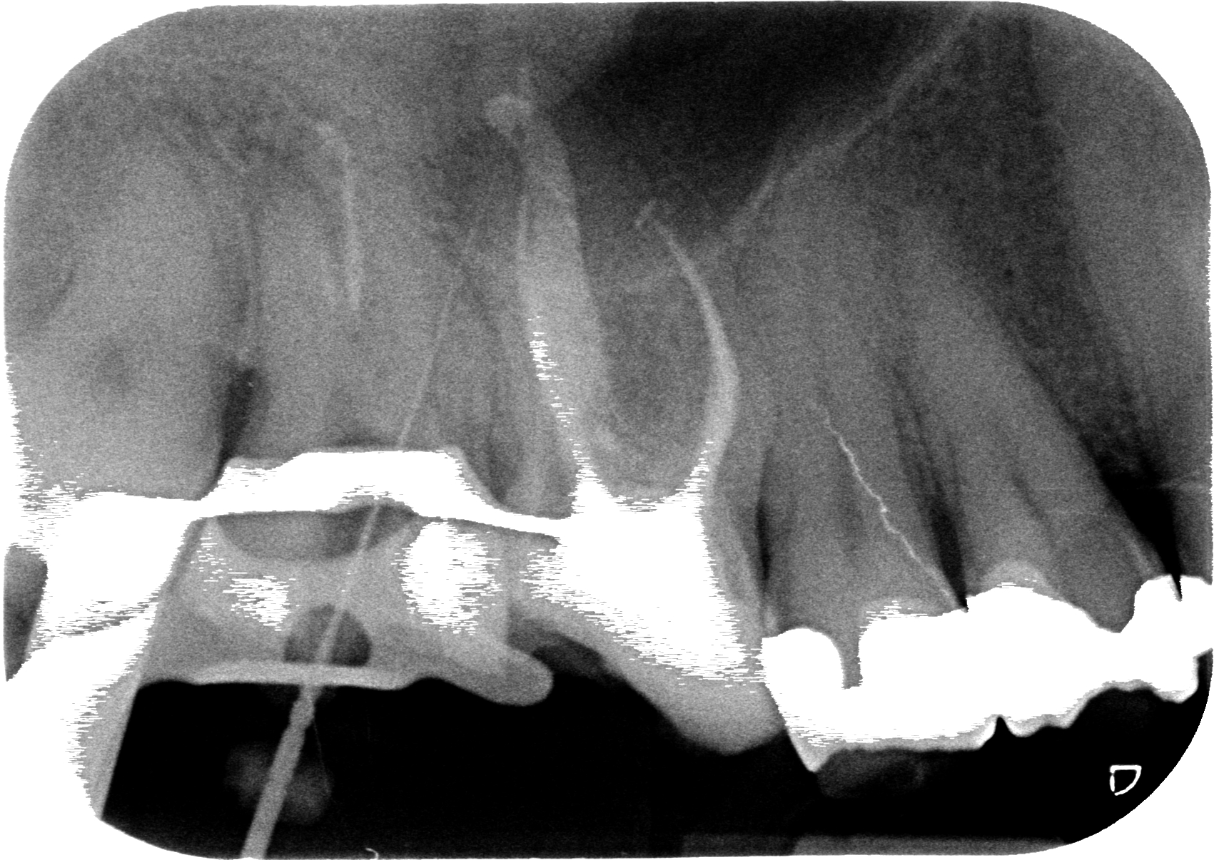 Il paziente e noi tiriamo un sospiro di sollievo. Dopo questo tentativo per il paziente si apriva lo spauracchio dell’apicectomia che non avrebbe voluto fare e che io stesso avrei faticato a praticare per la posizione sfavorevole.