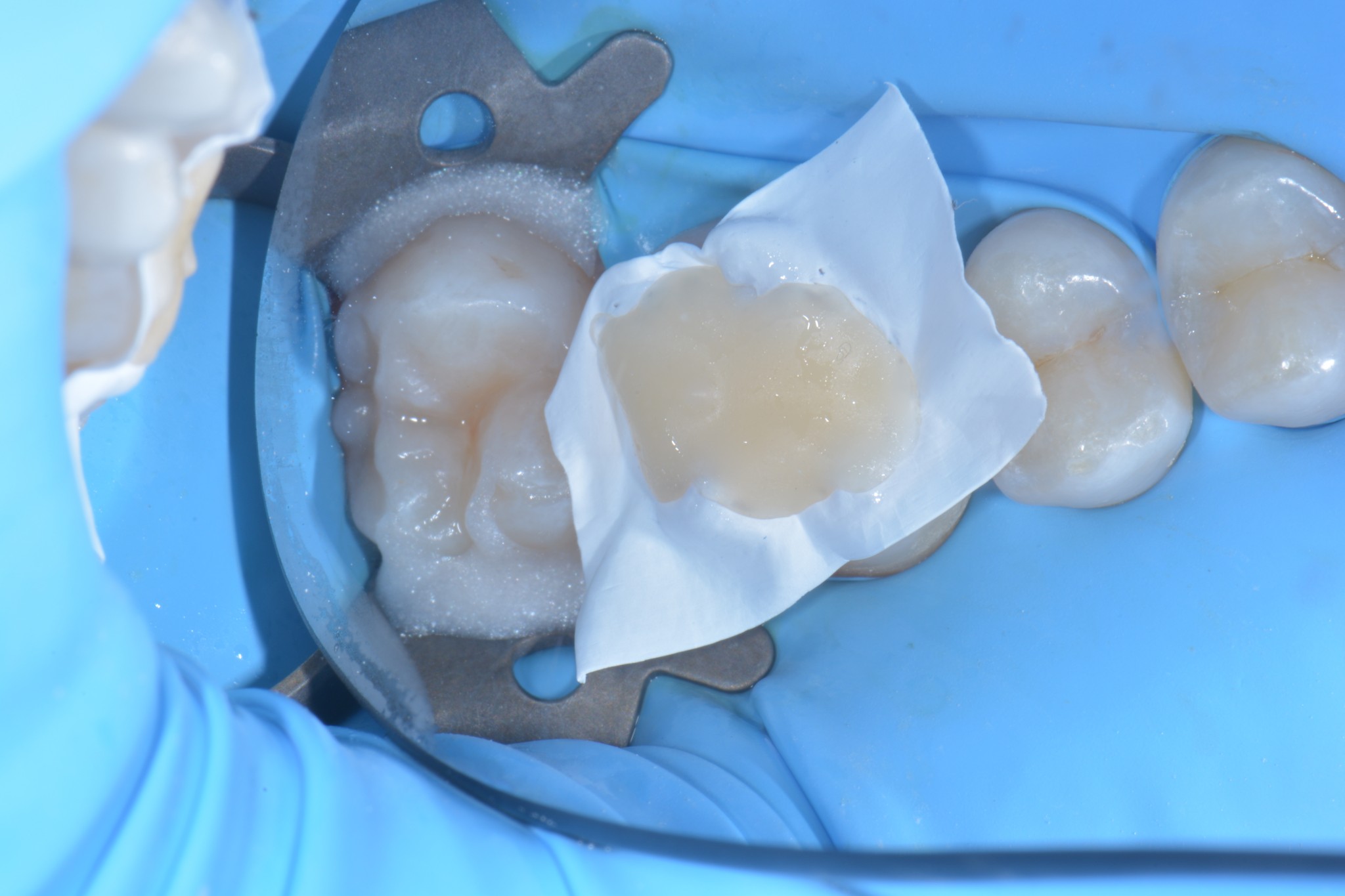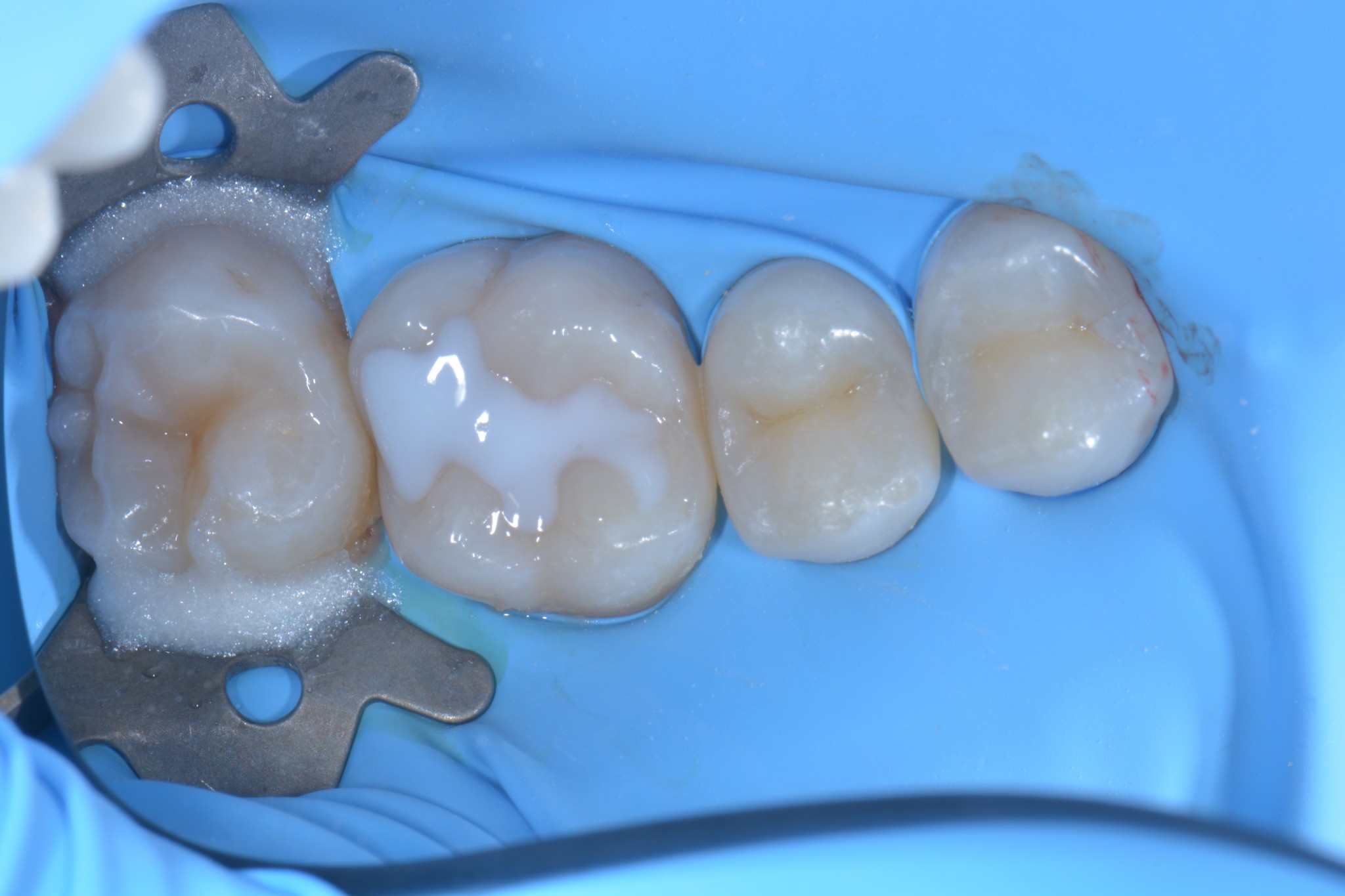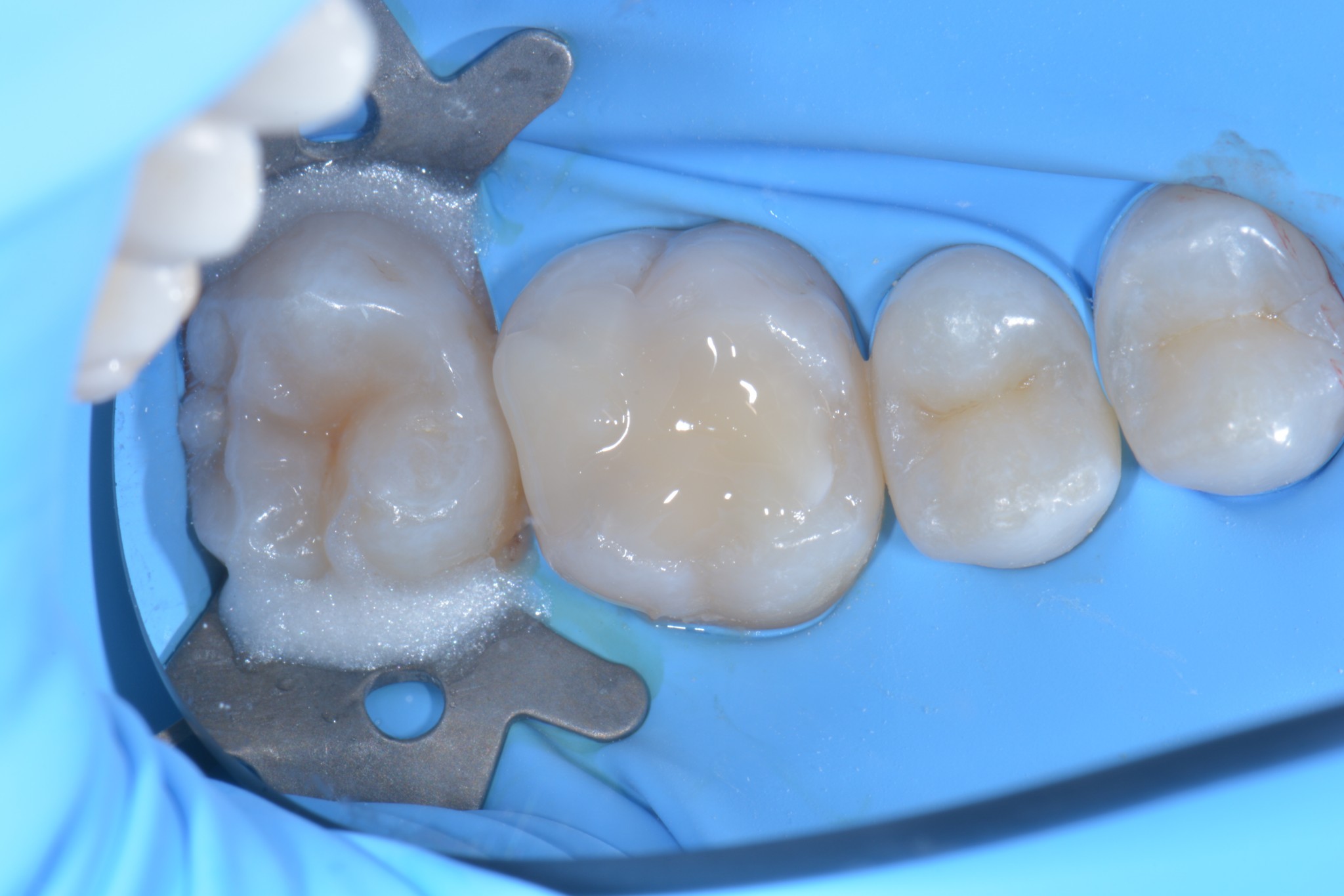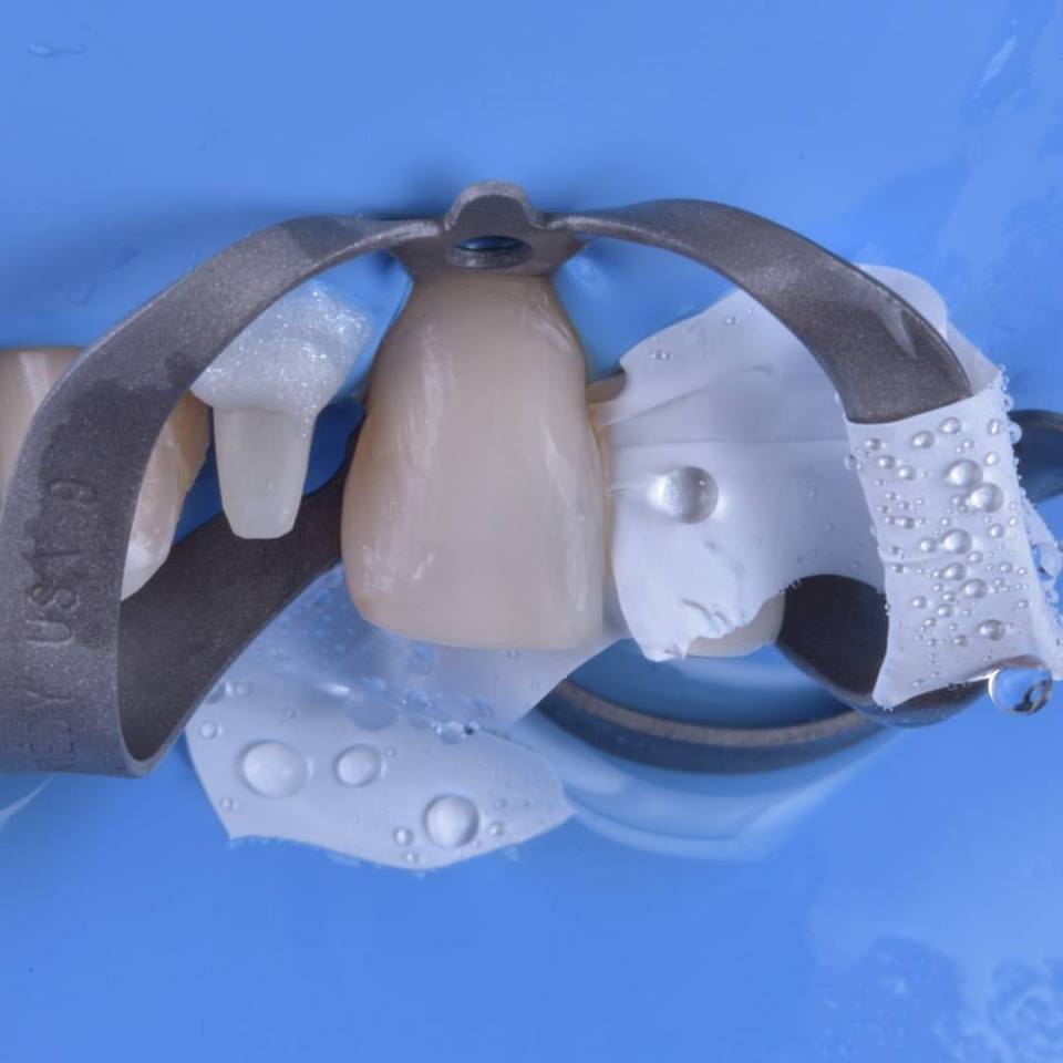 In primis quella che utilizzo di più e forse la più banale, ovvero, l’isolamento dei denti adiacenti in corso di cementazione di corone, faccette o intarsi.