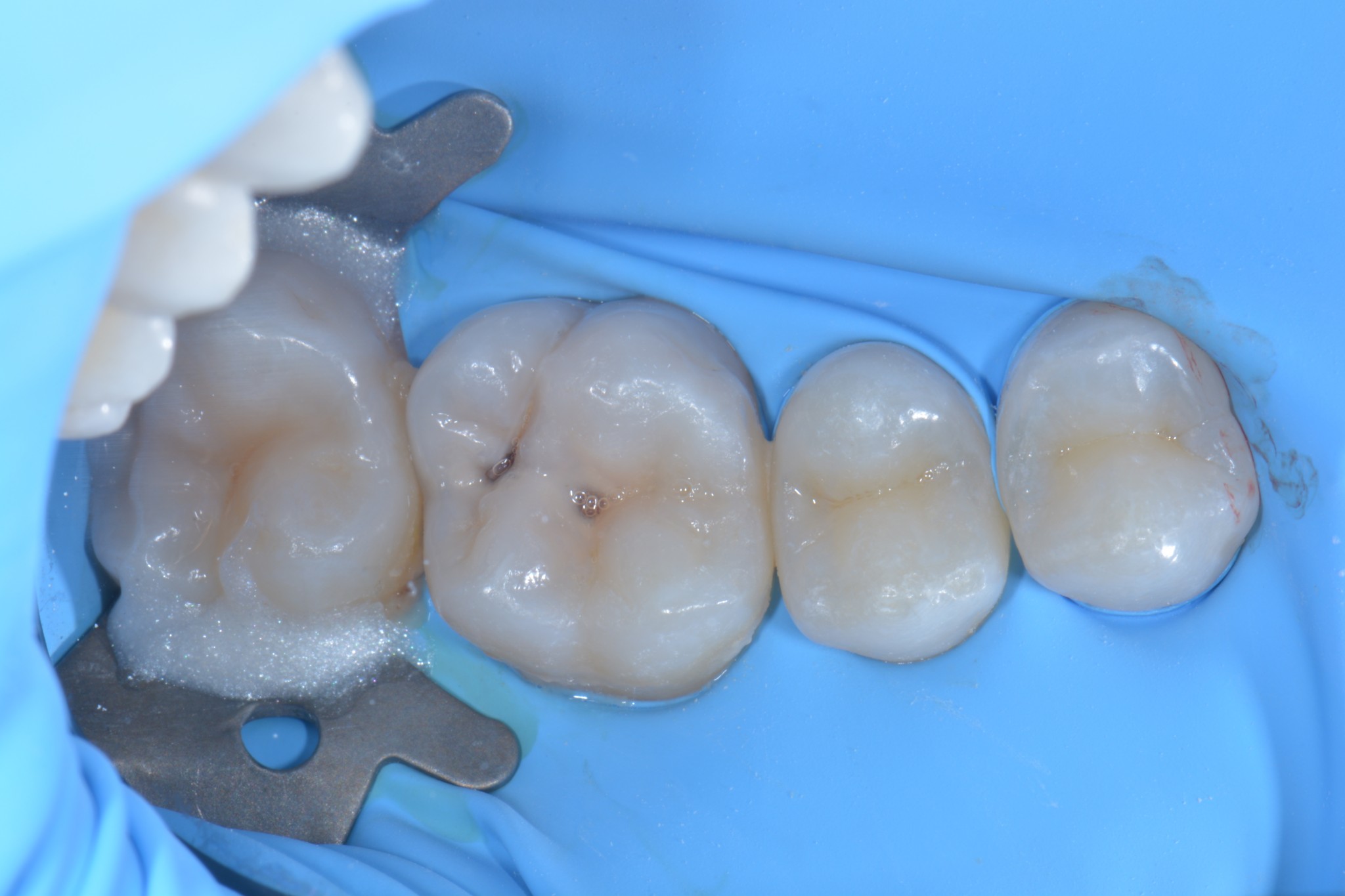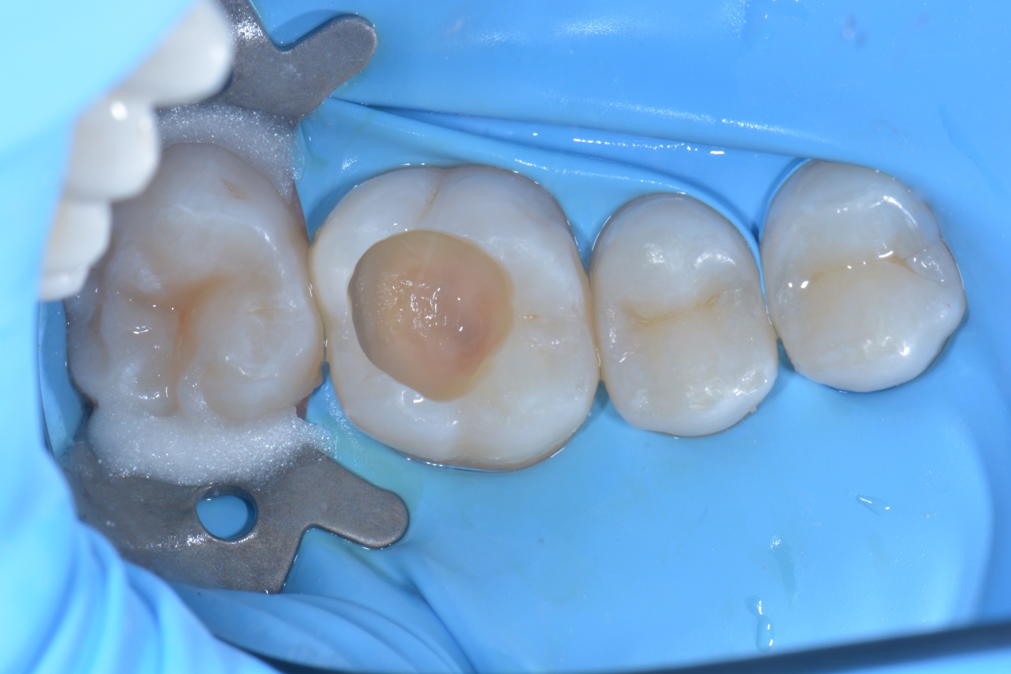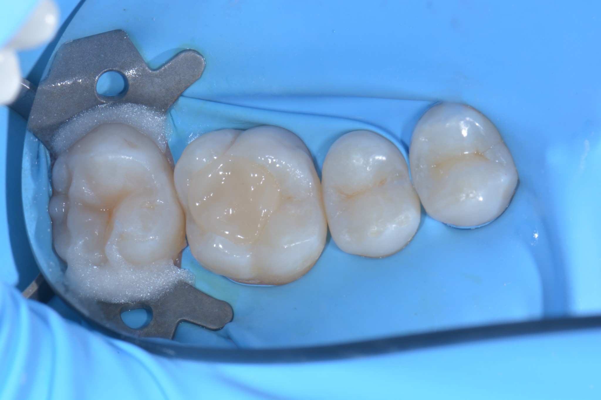 In primis quella che utilizzo di più e forse la più banale, ovvero, l’isolamento dei denti adiacenti in corso di cementazione di corone, faccette o intarsi.