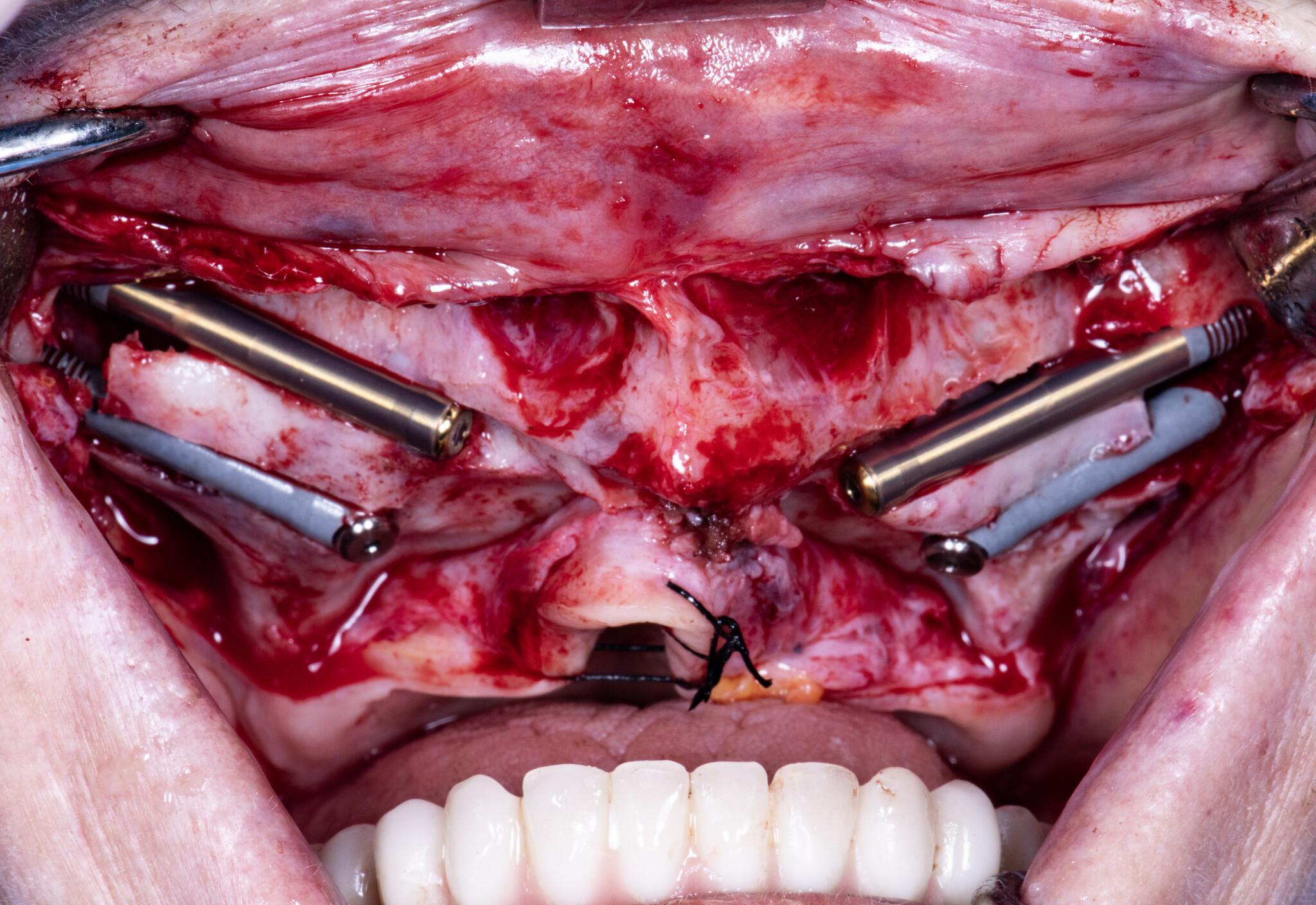 Come si può osservare dal video, gli impianti non sono in perimplantite: semplicemente, l’osso si è riassorbito attorno lasciandoli fuori.