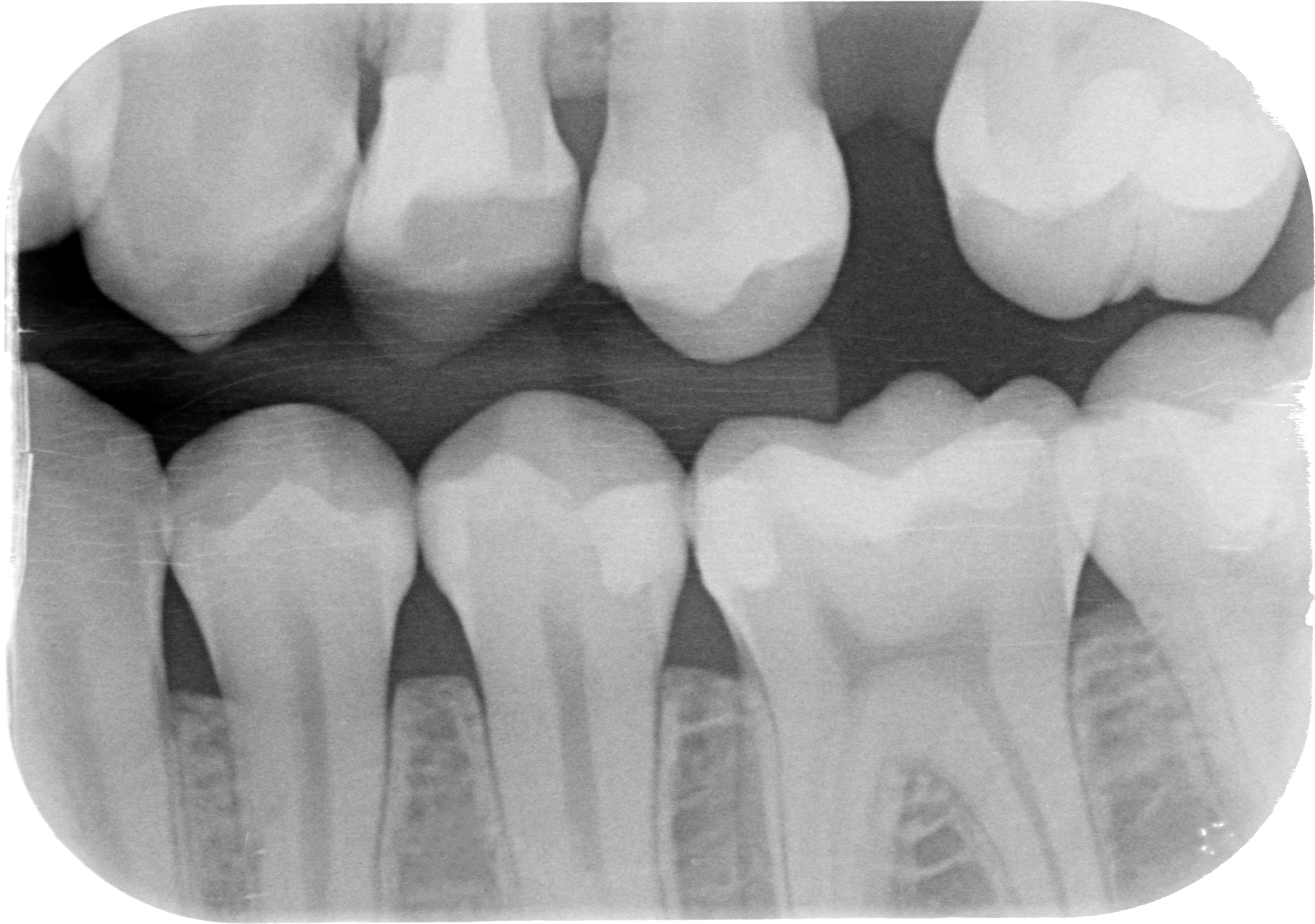 Se invadere l’ampiezza biologica massacra l’osso e genera tasche spiegami perchè in queste due rx scattate a 4 anni di distanza tra loro, l’osso distale al 4.7 mesializzato, che sarà da estrarre per altri motivi, sia sempre uguale, con un risentimento legato alla carie primaria che c’era stata verosimilmente decenni prima…?