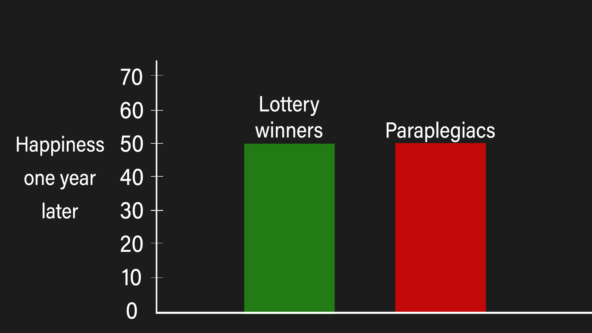 Un anno dopo, i soggetti che hanno vinto la lotteria e quelli che hanno perso l’uso delle proprie gambe sono ugualmente felici e soddisfatti della propria vita.