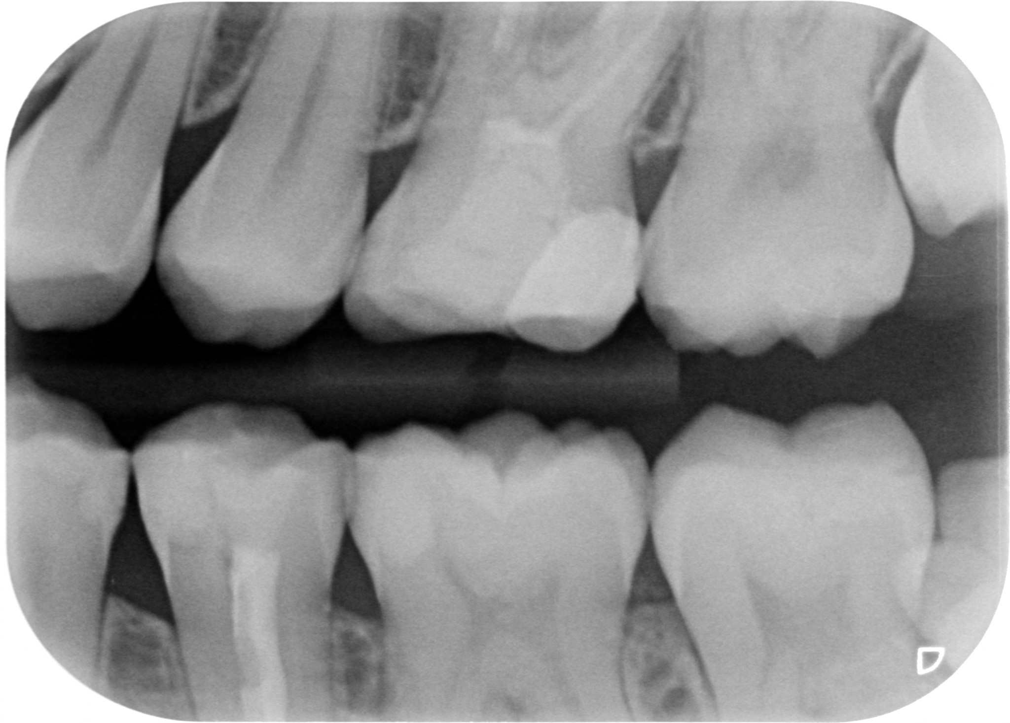 Comincio a fare una periapicale in alto a sinistra. Non centro bene la lastra e mi esce fuori questo.