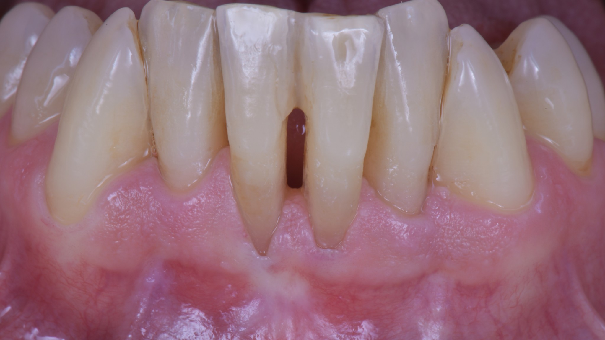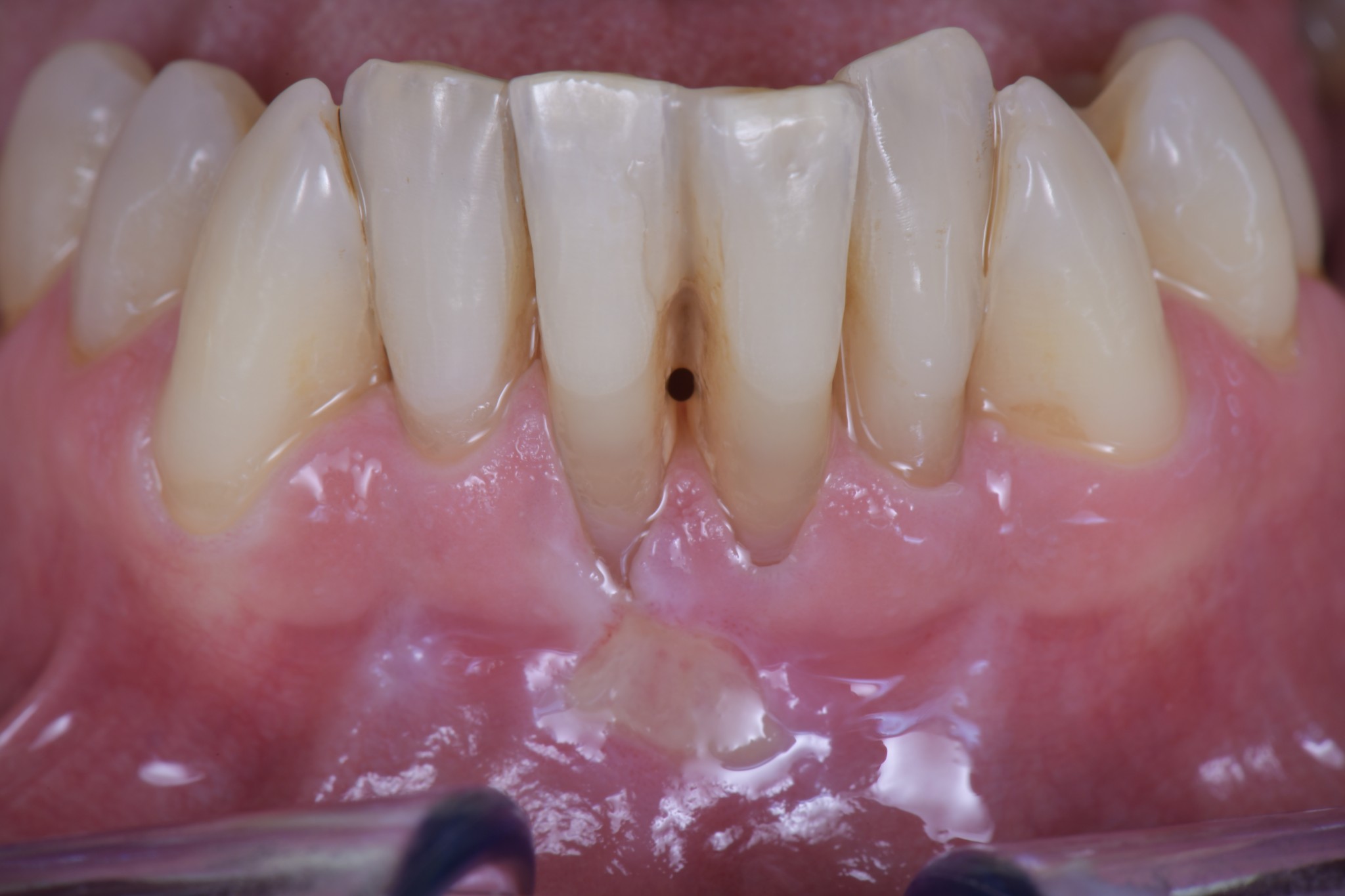 Il mio paziente si era presentato in visita con una ferita ricorrente da spazzolamento facilitata dalla scarsa qualità dei tessuti e dalla completa assenza di tessuto cheratinizzato.